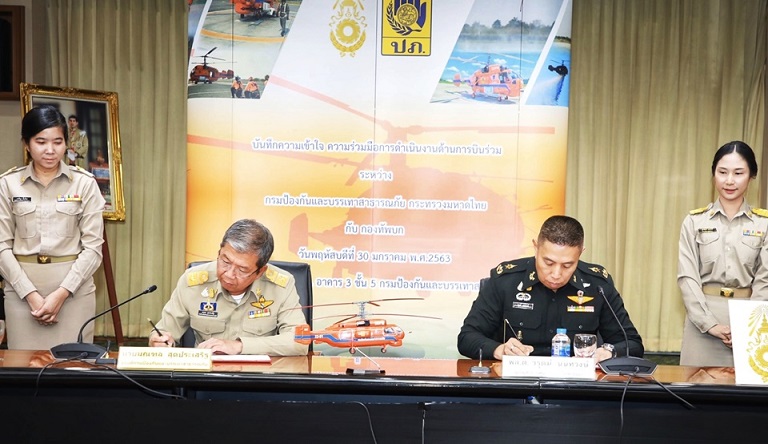 Army deputy spokesperson Col Sirichan Ngathong said Maj Gen Warut Nonthawong, commander of the Army Aviation Center, and Monthol Sudprasert, director-general of the department, signed the memorandum of understanding at the department.