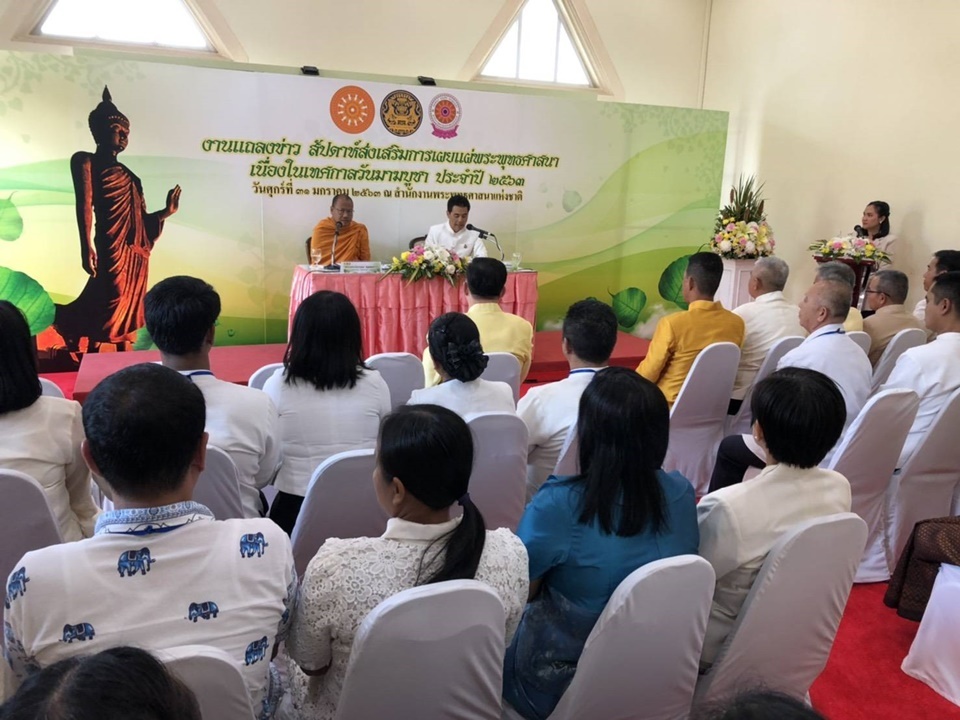 สำนักงานพระพุทธศาสนาแห่งชาติ(พศ.)แถลงข่าวการจัดกิจกรรมสัปดาห์ส่งเสริมการเผยแผ่พระพุทธศาสนา เนื่องในเทศกาลวันมาฆบูชา ประจำปี 2563 ในวันที่ 5–9 กุมภาพันธ์2563 เชิญชวนพุทธศาสนิกชนเข้าวัด ทำบุญ ลด ละ เลิก อบายมุขทั้งปวง โดยมีนายเทวัญ ลิปตพัลลภ รัฐมนตรีประจำสำนักนายกรัฐมนตรี และพระมหาประนอม ธัมมลงกาโร เจ้าอาวาสวัดจากแดง จังหวัดสมุทรปราการ เข้าร่วมแถลงข่าวในครั้งนี้