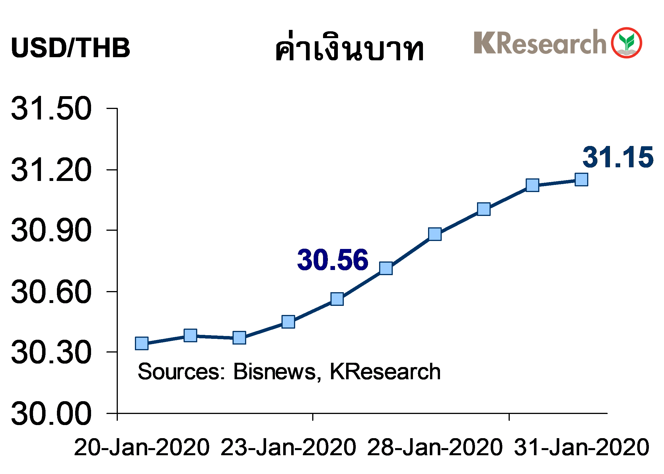 บริษัท ศูนย์วิจัยกสิกรไทย จำกัด รายงานว่า สัปดาห์ที่ผ่านมา เงินบาทอ่อนค่าลง สอดคล้องกับทิศทางของหลายสกุลเงินในภูมิภาคท่ามกลางความกังวลเกี่ยวกับผลกระทบทางเศรษฐกิจจากสถานการณ์การแพร่ระบาดของไวรัสโคโรนาสายพันธุ์ใหม่ สอดคล้องกับแรงขายสุทธิหุ้นไทยของนักลงทุนต่างชาติในระหว่างสัปดาห์ ขณะที่แรงซื้อเงินดอลลาร์ฯ ในช่วงใกล้สิ้นเดือนของผู้ประกอบการในประเทศก็เป็นปัจจัยลบของเงินบาทด้วยเช่นกัน