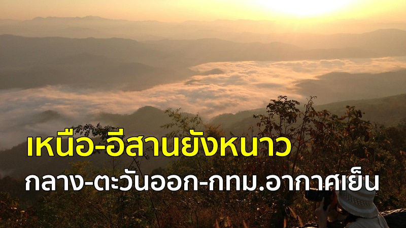 กรมอุตุนิยมวิทยา พยากรณ์อากาศ 24 ชั่วโมงข้างหน้า ภาคเหนือและภาคตะวันออกเฉียงเหนือ ยังคงมีอากาศเย็นถึงหนาว อุณหภูมิต่ำสุด 15-19 องศาเซลเซียส ส่วนภาคกลางและภาคตะวันออก มีอากาศเย็นในตอนเช้า สำหรับยอดดอยและยอดภู มีอากาศหนาวถึงหนาวจัด อุณหภูมิต่ำสุด 4-12 องศาเซลเซียส ขอให้ประชาชนบริเวณประเทศไทยตอนบนดูแลสุขภาพ เนื่องจากสภาพอากาศที่หนาวเย็น ขณะที่ภาคใต้มีฝนฟ้าคะนองบางแห่ง