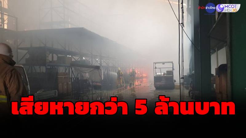 สมุทรสาคร 3 ก.พ.- ไฟโหมโกดังเช่าเก็บเครื่องมืออุปกรณ์ทำความสะอาดนานเกือบชั่วโมงย่านกระทุ่มแบน-สมุทรสาคร เสียหายกว่า 5 ล้านบาท คนเฝ้าโกดังวัย 56 ปี ไฟลวกบาดเจ็บ