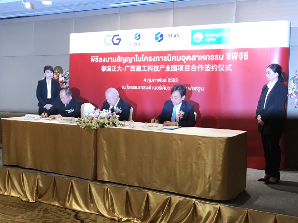 นอกจากนี้ ยังมีพิธีลงนามสัญญาในการเป็นผู้รับเหมาก่อสร้างหลักของโครงการนิคมอุตสาหกรรมซีพีจีซี มีมูลค่าการก่อสร้างกว่า 2,000 ล้านบาท ซึ่งเป็นการลงนามระหว่างนายสุนทร อรุณานนท์ชัย ประธานกรรมการ บริษัท ซีจี คอร์เปอเรชั่น จำกัด กับนายถัง หนง เฉิน ประธานบริษัท กว่างซี คอนสตรัคชั่น เอ็นจิเนียร์ริ่ง กรุ๊ป ยีอาน ซึ่งเป็นบริษัทก่อสร้างสาธารณูปโภคขนาดใหญ่จากประเทศจีน