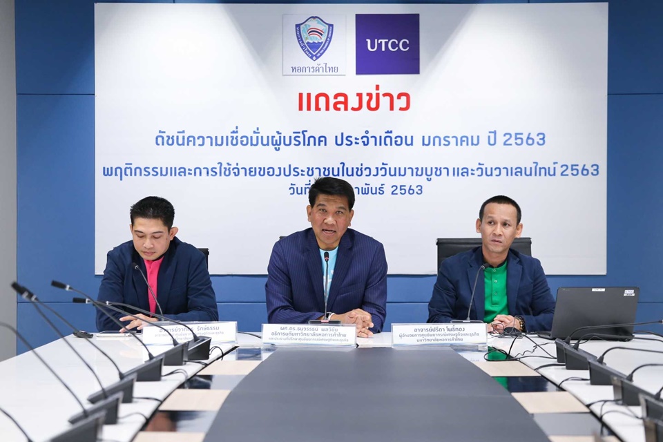 นายธนวรรธน์ พลวิชัย อธิการบดี มหาวิทยาลัยหอการค้าไทย เปิดเผยผลสำรวจดัชนีความเชื่อมั่นผู้บริโภคเดือนมกราคม