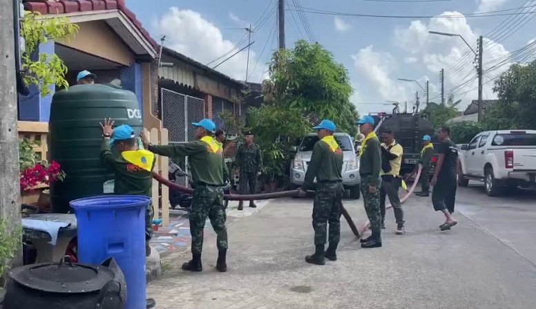 นครศรีธรรมราช 5 ก.พ.- กองทัพภาคที่ 4 พร้อมทหารจิตอาสาพระราชทานส่งรถน้ำเร่งช่วยชาวชุมชนการเคหะนครศรีฯ น้ำประปาไม่ไหลมาเกือบเดือน ชี้ปีนี้แล้งเร็ว และพื้นที่ชุมชนยังอยู่นอกเขตเทศบาลเมือง