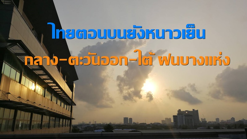 กรมอุตุนิยมวิทยา พยากรณ์อากาศ 24 ชั่วโมงข้างหน้า ประเทศไทยตอนบนยังคงมีอากาศหนาวเย็นกับมีหมอกในตอนเช้า โดยภาคเหนือและภาคตะวันออกเฉียงเหนือมีอุณหภูมิต่ำสุด 11-21 องศาเซลเซียส สำหรับยอดดอยและยอดภูมีอากาศหนาวถึงหนาวจัด อุณหภูมิต่ำสุด 3-15 องศาเซลเซียส ส่วนภาคกลาง ภาคตะวันออก และภาคใต้ มีฝนบางแห่ง