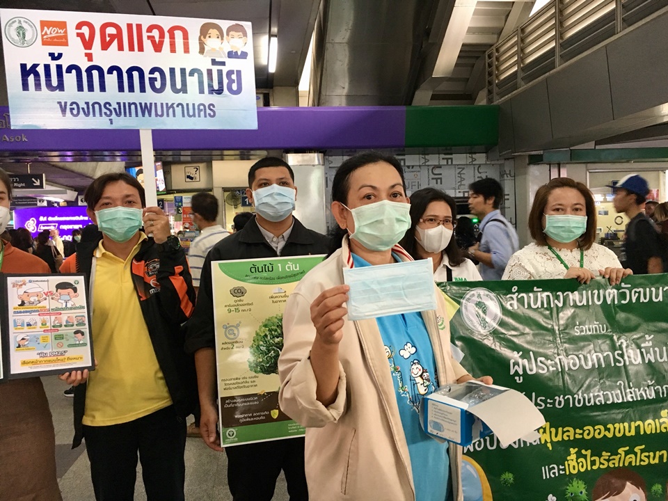 เจ้าหน้าที่จากสำนักอนามัยและสำนักงานเขตวัฒนา กรุงเทพมหานคร ลงพื้นที่บริเวณสถานีรถไฟอโศก ตั้งจุดแจกหน้ากากอนามัยฟรีให้กับประชาชน โดยเป็นวันที่ 2 ที่แต่ละสำนักงานที่มีสถานีรถไฟฟ้าบีทีเอส,รถไฟใต้ดิน หรือ จุดที่มีประชาชนเดินทางหนาแน่น ซึ่งพล.ต.อ.อัศวิน ขวัญเมือง ผู้ว่าฯกทม.กำหนดให้สำนักอนามัยจัดส่งหน้ากากอนามัยให้ แต่ละเขตลงพื้นที่แจก 5-9 ก.พ.นี้ ในช่วงเช้าและเย็น
