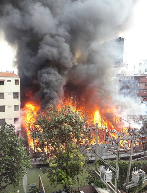 The narrow alley at the entrance to the community made it difficult for the operation to put out the fire and officials had to use the water from the Sam Sen canal to extinguish the fire.