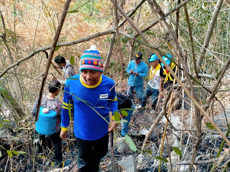 สุราษฎร์ธานี 6 ก.พ.- ปลัดอำเภอดอนสักร่วมทีมท้องถิ่น และชาวบ้านจิตอาสาเดินเท้าขึ้นเขาพร้อมแกลลอนน้ำดับไฟป่าได้สำเร็จ หลังลุกไหม้ตั้งแต่กลางดึก