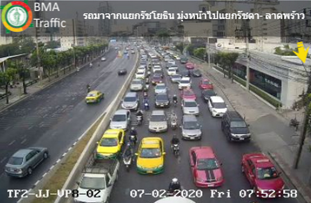 กทม. 7 ก.พ.-สวพ.FM91 รายงานจราจรเช้าวันศุกร์ ถนนรัชดาภิเษก ขาเข้า มุ่งหน้าไปทางอุโมงค์ห้วยขวาง การจราจารติดขัดมาก ท้ายแถวสะสมอยู่ที่เชิงทางขึ้นอุโมงค์ลอดแยกรัชโยธิน