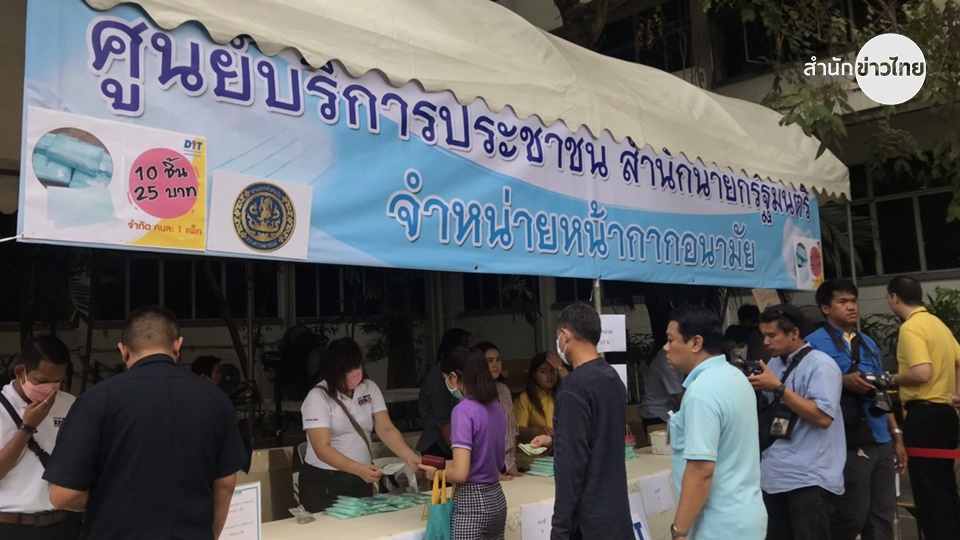 ทำเนียบฯ 7 ก.พ.-ทำเนียบรัฐบาล เปิดจำหน่ายหน้ากากอนามัยจุดละหมื่นชิ้น แพคละ 25 บาท จำนวน 10 ชิ้น ประชาชนตื่นตัวมาต่อคิวซื้อแต่เช้า ปลัดสำนักนายกรัฐมนตรี แจงไม่แจกฟรี เกรงจะมีคนนำไปขายต่อ เพื่อหวังกำไร และจำกัดการซื้อ เพื่อบรรเทาความเดือดร้อนในช่วงหน้ากากอนามัยขาดแคลน