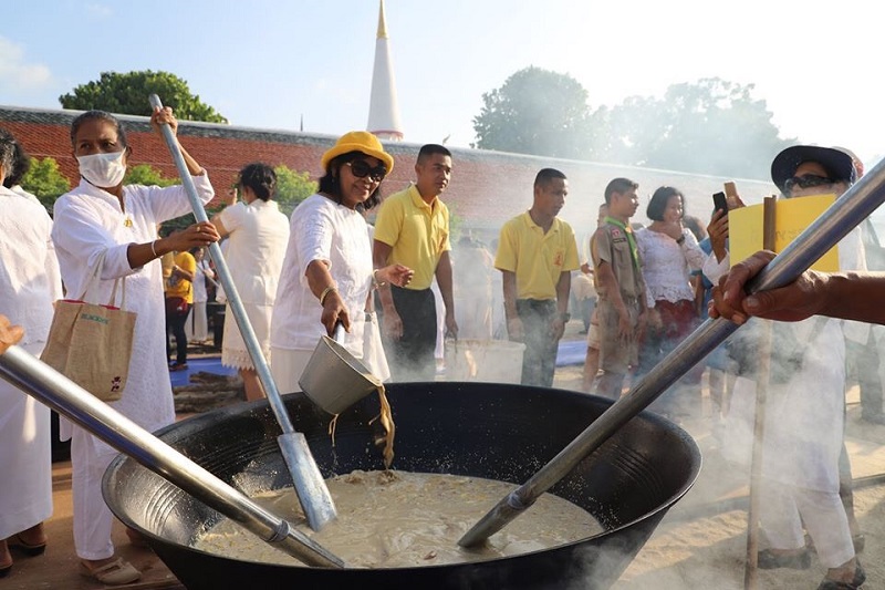 นครศรีธรรมราช 7 ก.พ.- นครศรีฯ สืบสานประเพณีเก่าแก่ “กวนข้าวมธุปายาส” 9 กระทะ เนื่องในงานมาฆบูชา แห่ผ้าขึ้นธาตุ ประจำปี 2563