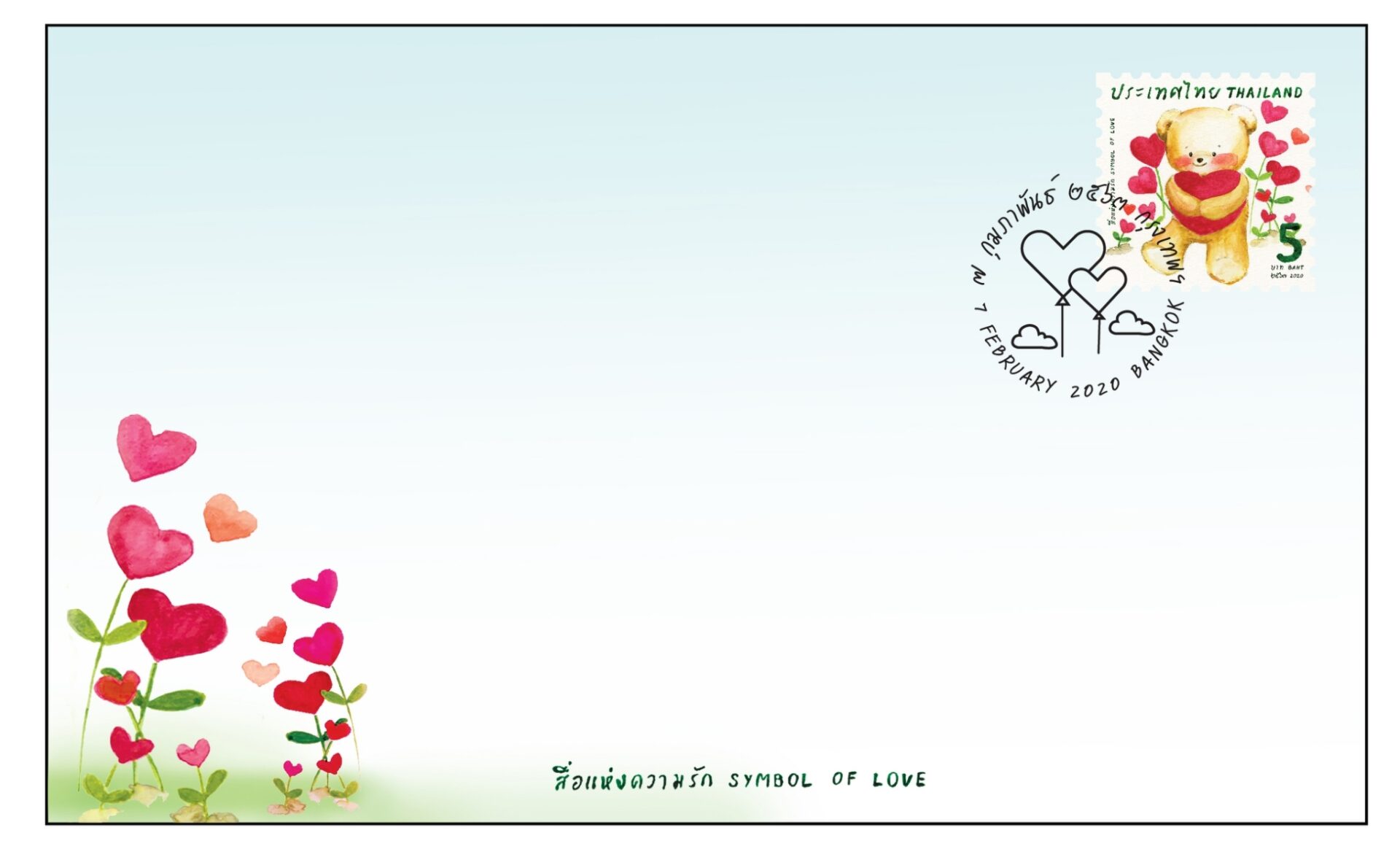 ไปรษณีย์ไทยต้อนรับเดือนแห่งความรักด้วยแสตมป์รักสลักใจ ภาพหมีน้อยกอดหัวใจ ใส่เทคนิคปั๊มฟอยล์วาวใสและหมึกเรืองแสง ตราไปรษณียากรชุดสื่อแห่งความรักที่ออกเป็นประจำทุกปี สำหรับปีนี้เป็นภาพวาดตุ๊กตาหมีกอดหัวใจ กลางแมกไม้หัวใจเบ่งบานสีสันสดใสสื่อถึงความรักแสนอบอุ่น ราคาดวงละ 5 บาท เต็มแผ่น 10 ดวง ราคา 50 บาทซองวันแรกจำหน่าย 14 บาท นอกจากนี้ยังเพิ่มความพิเศษด้วยเทคนิคปั๊มฟอยล์ใสวาวแสงบริเวณรูปหัวใจ และพิมพ์เคลือบหมึกล่องหน (invisible ink) บริเวณข้อความและตัวเลขชนิดราคา และรูปหัวใจบนชานแสตมป์แบบเต็มแผ่น เพื่อให้เรืองแสงเมื่อส่องด้วยไฟแบล็กไลต์ เริ่มเป็นเจ้าของได้ 7 ก.พ.2563 เป็นต้นไป ผู้สนใจหาซื้อได้ที่ไปรษณีย์ทุกแห่งทั่วประเทศ พิพิธภัณฑ์ตราไปรษณียากรสามเสนในและเชียงใหม่ หรือซื้อทางออนไลน์และแอปพลิเคชัน thailandpostmart.com
