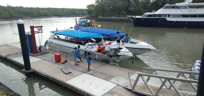 เมื่อเวลา 08.15 น. (10 ก.พ.) เจ้าหน้าที่ศูนย์นเรนทรอันดามัน รับแจ้งเหตุสปีดโบ๊ทชนกันบริเวณร่องน้ำใกล้ท่าเทียบเรือ ต.เกาะแก้ว อ.เมือง จ.ภูเก็ต จึงประสานตำรวจสภ.เมืองภูเก็ต หน่วยกู้ชีพมูลนิธิกุศลธรรมภูเก็ต หน่วยแพทย์ฉุกเฉินโรงพยาบาลวชิระภูเก็ต และโรงพยาบาลมิชชั่นภูเก็ต เข้าช่วยเหลือผู้บาดเจ็บ 20 ราย ส่วนใหญ่เป็นนักท่องเที่ยวชาวต่างชาติ ถูกนำส่งโรงพยาบาลมิชชั่นภูเก็ต 2 ราย โรงพยาบาลวชิระภูเก็ต 1 ราย โรงพยาบาลกรุงเทพภูเก็ต 11 ราย โรงพยาบาลกรุงเทพสิริโรจน์ 6 ราย ส่วนใหญ่เป็นนักท่องเที่ยวต่างชาติ นอกจากนี้ ยังมีผู้เสียชีวิต 2 ราย