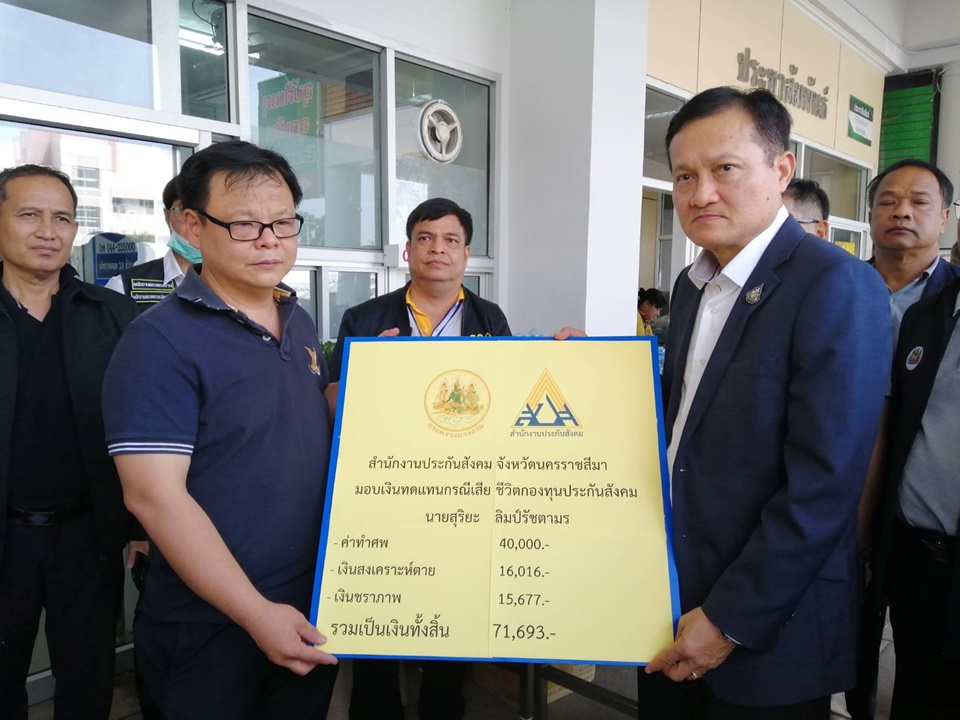 2. นายสุริยะ ลิมป์รัชตามร ทายาทได้รับประโยชน์ทดแทน ค่าทำศพ 40,000 บาท เงินสงเคราะห์กรณีเสียชีวิต 16,016 บาท เงินชราภาพ 15,677 บาท รวม 71,693 บาท