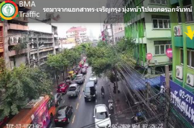 กทม. 12 ก.พ.-สวพ.FM91 รายงานจราจรเช้าวันพุธ ถนนเจริญกรุง ขาเข้า จากแยกตัดถนนจันทน์ มุ่งหน้าแยกเฉลิมพันธุ์ – บางรัก รถมาก เคลื่อนตัวช้า