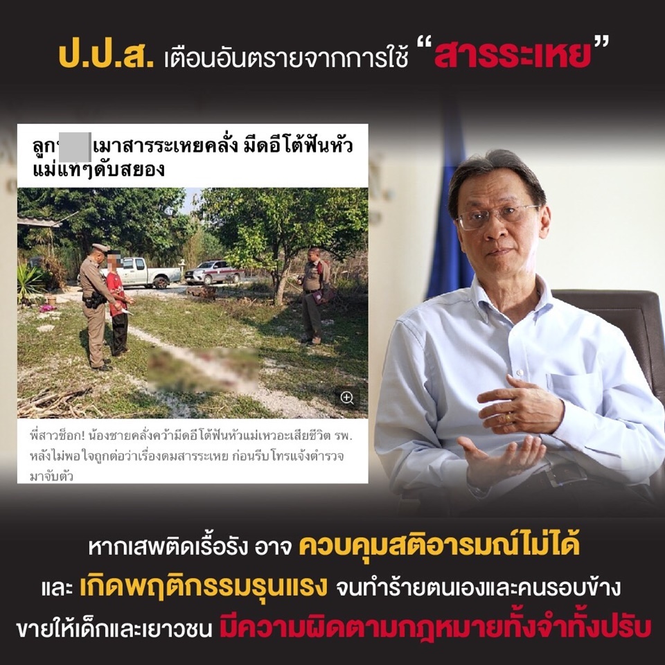 ป.ป.ส.12 ก.พ.-ป.ป.ส.เตือนอันตรายจากการใช้ “สารระเหย” หากเสพติดเรื้อรัง อาจควบคุมสติอารมณ์ไม่ได้ และเกิดพฤติกรรมรุนแรง