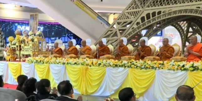 Buddhist monks chanted prayers to bring good luck in the blessing ceremony for the city and the shopping mall.