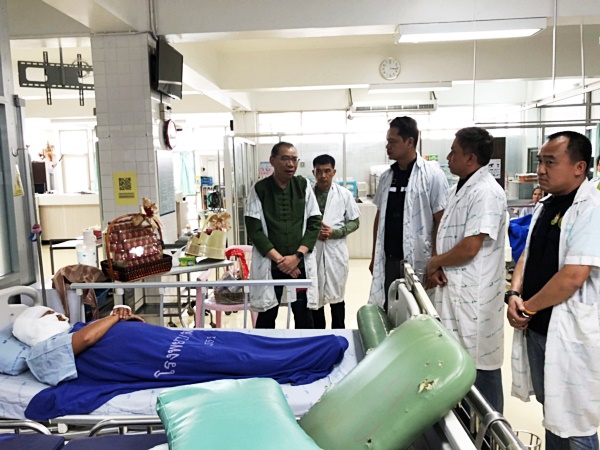 นายณรงค์ศักดิ์ โอสถธนากร ผู้ว่าราชการจังหวัดลำปาง พร้อมเจ้าหน้าที่สำนักงานทรัพยากรธรรมชาติและสิ่งแวดล้อมจังหวัดลำปาง เยี่ยมอาการบาดเจ็บนายวันตรี ไพรชื่นสกุล ชุดเหยี่ยวไฟจาก จ.แม่ฮ่องสอน สังกัดกรมป่าไม้ นอนรักษาตัวอยู่ภายในหอผู้ป่วยปลอดเชื้อ โรงพยาบาลลำปาง หลังประสบเหตุลื่นบริเวณเชิงเขาและถูกไฟลวก ขณะปฏิบัติหน้าที่มาช่วยภารกิจดับไฟป่าดอยพระบาท ในพื้นที่บ้านห้วยยาง ม.6 ต.บ้านเสด็จ อ.เมือง จ.ลำปาง เมื่อวันที่ 14 ก.พ.ที่ผ่านมา โดยอาการนายวันตรี มีบาดแผลจากไฟลวกตามแขน มือ และใบหน้า ซึ่งนายณรงค์ศักดิ์ ได้กำชับให้หน่วยงานที่เกี่ยวดูแลช่วยเหลือค่ารักษาพยาบาลอย่างเต็มที่