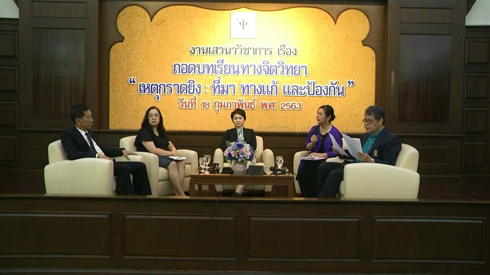 ผศ.ดร.พรรณรพี สุทธิวรรณ คณบดีคณะจิตวิทยา กล่าวว่า เวทีเสวนานี้มุ่งหวังให้สังคมมองเห็นถึงความสำคัญของการนำบทเรียนจากโศกนาฏกรรมที่เกิดขึ้น ไม่ว่าจะเป็นด้านพฤติกรรมที่ก่อให้เกิดความรุนแรง เหตุปัจจัยที่ก่อให้เกิดเหตุอาชญากรรม ทางออกทางแก้ปัญหาฯลฯ เพื่อไม่ให้เกิดเหตุร้ายเช่นนี้ซ้ำรอยอีก ชี้ให้ทุกคนในสังคมมองเห็นว่าเรื่องเหล่านี้เป็นเรื่องที่ไม่ไกลตัว สามารถเกิดขึ้นได้กับเราทุกคนจากสภาพสังคมที่กดดัน แนะให้ทุกภาคส่วนที่เกี่ยวข้องร่วมกันแก้ไข เริ่มตั้งแต่การให้ความสำคัญในห้องเรียน โดยเพิ่มทักษะการใช้ชีวิต หรือ Life Skill มากกว่าแข่งขันทางการศึกษา เพื่อเป็นเกราะป้องกันทางจิตใจให้สามารถรับมือกับปัญหาและหาทางออกโดยไม่จบลงที่การใช้ความรุนแรง .-สำนักข่าวไทย