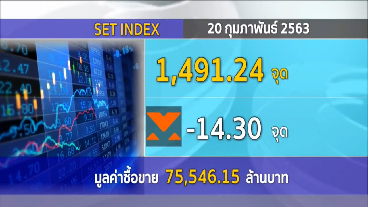 กรุงเทพฯ 20 ก.พ. – ตลาดหลักทรัพย์ปิดวันนี้ที่ระดับ 1,491.24 จุด ลดลง 14.30 จุด (-0.95%) มูลค่าการซื้อขาย 75,546.15 ล้านบาท
