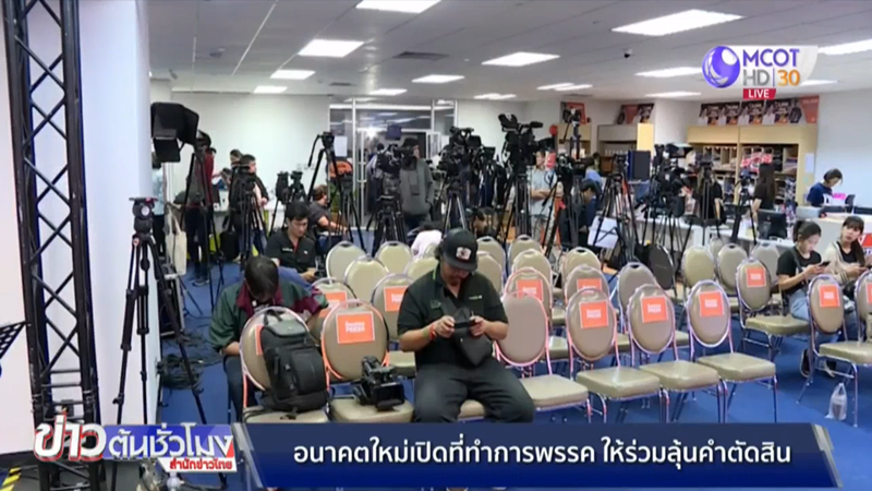 พรรคอนาคตใหม่ 21 ก.พ. – พรรคอนาคตใหม่ เปิดที่ทำการพรรครองรับสื่อมวลชนและกลุ่มผู้สนับสนุนที่มารอฟังคำวินิจฉัยศาลรัฐธรรมนูญ ปมกู้เงิน 191 ล้านบาท