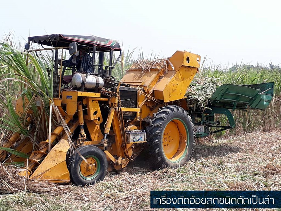ล่าสุดศูนย์วิจัยพืชไร่สุพรรณบุรี สถาบันวิจัยพืชไร่และพืชทดแทนพลังงาน คิดค้นรถตัดอ้อยสดชนิดตัดเป็นลำ ซึ่งมีส่วนประกอบหลักคือรถแทรกเตอร์ขนาด 70 แรงม้า ทำหน้าที่ขับเคลื่อนรถตัดอ้อย และชุดตัดอ้อยพร้อมถาดรับลำอ้อย เมื่อตัดอ้อยได้เต็มถาดจะเทอ้อยกองแล้วใช้รถคีบอ้อยใส่รถบรรทุก ซึ่งรถตัดอ้อยนี้มีกลไกไม่ซับซ้อน และมีราคาที่เกษตรกรไทยสามารถซื้อใช้เองได้ กรณีชาวไร่ไม่สามารถใช้รถตัดอ้อย แนะนำให้มีการสางใบอ้อยแห้ง เพื่อตัดอ้อยสดได้เร็วขึ้น ซึ่งใบอ้อยคลุมดินจะช่วยรักษาความชื้นให้กับดิน ทำให้อ้อยยังเจริญเติบโตถึงแม้ว่าจะหมดฤดูฝน ซึ่งเครื่องสางใบอ้อยและมีดสางใบจะช่วยให้การสางใบอ้อยทำได้รวดเร็วและประหยัดแรงงาน