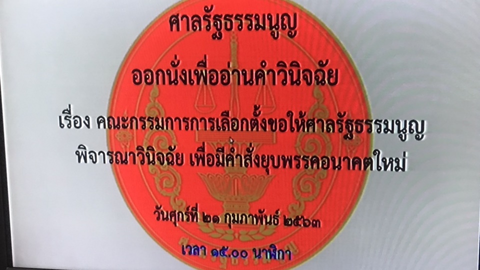 ศาลรัฐธรรมนูญ 21 ก.พ.-ศาล รธน.เตรียมอ่านคำวินิจฉัยคดียุบพรรคอนาคตใหม่ ปมกู้เงิน 191.2 ล้านบาทแล้ว ด้านองค์กรต่างประเทศร่วมสังเกตการณ์ ขณะที่พรรคอนาคตใหม่ไม่ส่งตัวแทนร่วมฟัง