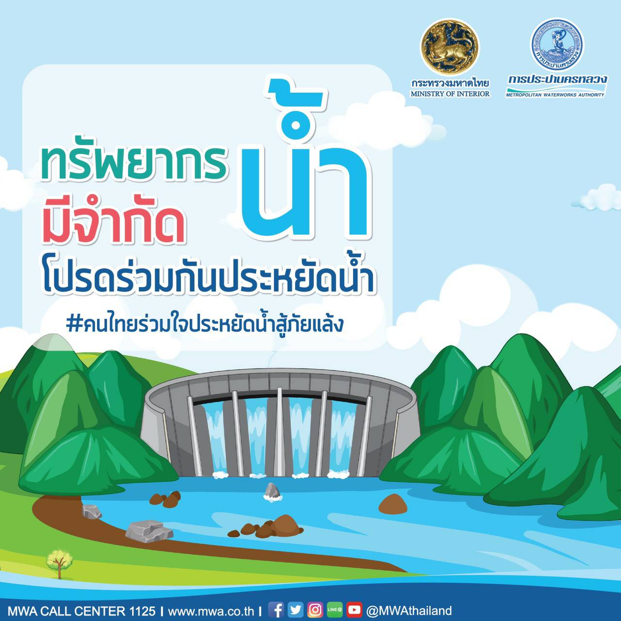 นอกจากนี้ กปน. ได้รายงาน สถานการณ์น้ำใน 4 เขื่อนหลักลุ่มน้ำเจ้าพระยา มีปริมาณน้ำใช้การได้ 3,376 ล้าน ลบ.ม. คิดเป็น ร้อยละ19% ของความจุน้ำใช้การ กปน. จึงขอเชิญชวนคนไทยร่วมใจประหยัดน้ำสู้ภัยแล้ง เพื่อลดการสูญเสียน้ำประปา และสงวนน้ำต้นทุนไว้ให้ทุกภาคส่วนใช้อย่างเพียงพอ ด้วยการใช้น้ำอย่างรู้คุณค่า ด้วยการ หมั่นตรวจสอบระบบประปาภายในบ้านตนเอง และซ่อมแซมทันทีหากพบการแตกรั่ว,ใช้อุปกรณ์ที่มีฉลากประหยัดน้ำ ที่ได้รับการรับรองจาก กปน. ,และหากพบเห็นท่อประปาในพื้นที่สาธารณะแตกรั่ว สามารถแจ้งได้ที่ MWA Call Center 1125 หรือแอปพลิเคชัน MWA on Mobile ตลอด 24 ชั่วโมง -สำนักข่าวไทย