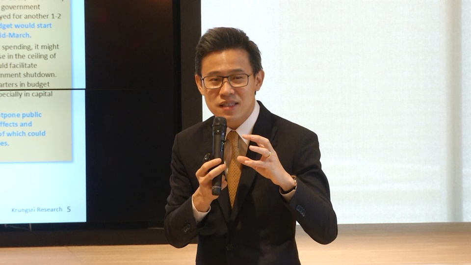 นายสมประวิณ มันประเสริฐ ผู้บริหารสายงานวิจัยและหัวหน้าทีมเศรษฐกิจ ธนาคารกรุงศรีอยุธยา จำกัด (มหาชน) กล่าวว่า ธนาคารปรับลดจีดีพีปี 2563 ลงเหลือ 1.5% จากเดิมคาดจะขยายตัว 2.5% เนื่องจากเศษฐกิจไทยได้รับผลกระทบอย่างหนัก โดยเฉพาะครึ่งปีแรกจากความล่าช้าของการเบิกจ่ายงบประมาณปี 2563 โดยคาดว่าจะเริ่มเบิกจ่ายได้ภายในสิ้นเดือนมีนาคม หรืออย่างเร็วสุดกลางเดือนมีนาคม ทำให้การลงทุนโครงสร้างพื้นฐานทั้งโครงการใหม่และที่กำลังดำเนินการล่าช้า กระทบจีดีพีลด 0.9% นอกจากนี้ ยังส่งผลต่อความเชื่อมั่นของเอกชนด้วย