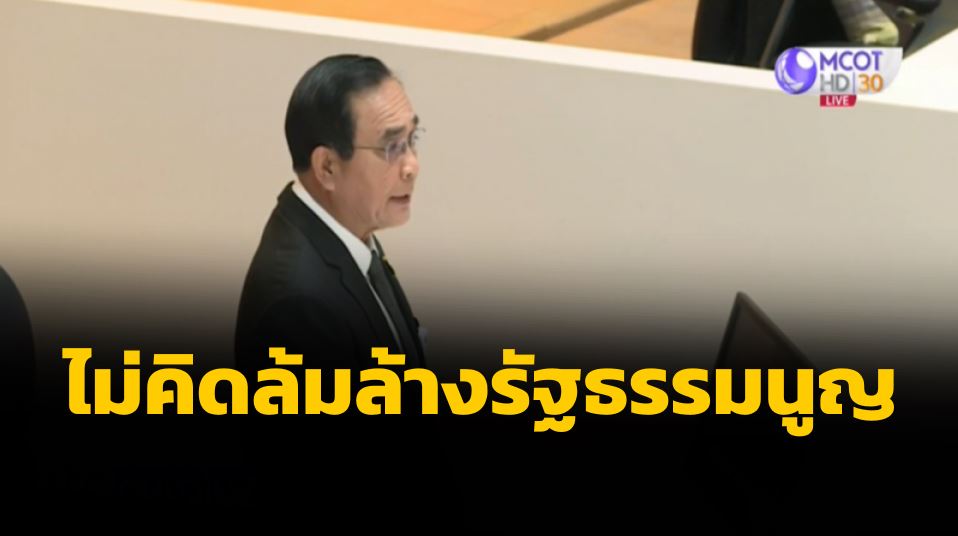 รัฐสภา 24 ก.พ. – นายกรัฐมนตรี ชี้แจงต่อที่ประชุมสภาฯ ด้วยใบหน้ายิ้มแย้ม ยืนยันไม่เคยมีแนวคิดล้มล้างรัฐธรรมนูญ ไม่เคยใช้คำพูดหยาบคายกับสื่อ และไม่เคยเอื้อประโยชน์ให้ใคร