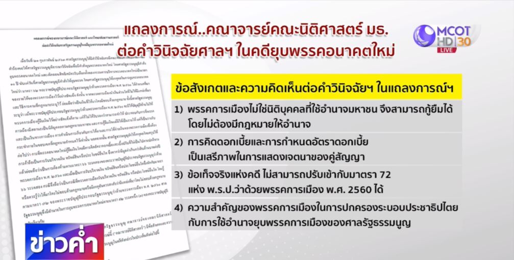 มธ. 24 ก.พ.- 36 คณาจารย์ประจำคณะนิติศาสตร์ มหาวิทยาลัยธรรมศาสตร์ ออกแถลงการณ์กรณีศาลรัฐธรรมนูญมีคำวินิจฉัยยุบพรรคอนาคตใหม่