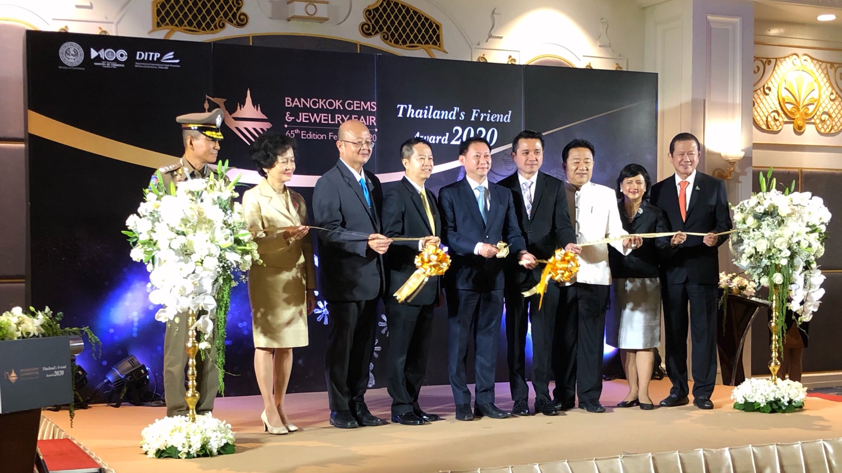 นายสรรเสริญ สมะลาภา ผู้ช่วยรัฐมนตรีว่าการกระทรวงพาณิชย์ เปิดงานแสดงสินค้า Bangkok Gems & Jewelry Fair ครั้งที่ 65 จัด โดยกรมส่งเสริมการค้าระหว่างประเทศวันที่ 25-29 กุมภาพันธ์นี้ ชาเลนเจอร์ฮอลล์ 1-3 อิมแพ็ค เมืองทองธานี พร้อมมอบรางวัล “มิตรแท้การค้าไทย 2563”หรือ “Thailand’s Friend Award 2020” ที่ประเดิมครั้งแรกในงานนี้ เพื่อขอบคุณกลุ่มผู้นำเข้ารายสำคัญ กลุ่มผู้มีส่วนในการขยายโอกาสทางการค้า ตลอดจนผู้มีอิทธิพลในสื่อสังคมออนไลน์ ด้านการรักษา การขยายตลาด และฟื้นฟูตลาดอย่างต่อเนื่อง