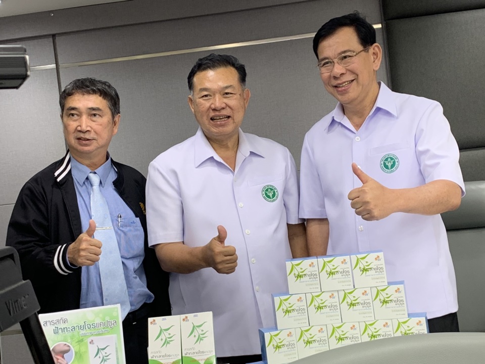 นพ.สุขุม กาญจนพิมาย ปลัดกระทรวงสาธารณสุข กล่าวว่า การลงนามบันทึกข้อตกลงความร่วมมือว่าด้วยการวิจัยยาสมุนไพรฟ้าทะลายโจรกับไวรัสโคโรนา 2019 ระหว่างกรมการแพทย์แผนไทยและการแพทย์ทางเลือก กรมวิทยาศาสตร์การแพทย์ และองค์การเภสัชกรรมในครั้งนี้ เป็นการบันทึกข้อตกลงเกี่ยวกับการจัดทำโครงการศึกษาวิจัยประสิทธิผลของยาสมุนไพรฟ้าทะลายโจร ในการต้านเชื้อไวรัสโควิด-19 สืบเนื่องจากข้อมูลการศึกษาวิจัยที่ผ่านมาพบว่าสมุนไพรฟ้าทะลายโจร สามารถกระตุ้นภูมิคุ้มกันของร่างกาย ต้านการอักเสบ ช่วยลดไข้ และสามารถต้านเชื้อโคโรนาไวรัสที่ก่อโรคซาร์สได้