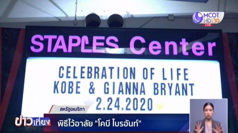 สหรัฐ 25 ก.พ.- แฟนบาสเกตบอลกว่า 2 หมื่นคน ร่วมพิธีไว้อาลัย โคบี ไบรอันท์ ตำนานนักยัดห่วงจากแอลเอ เลเกอร์ส และบุตรสาว ที่ถูกจัดขึ้นอย่างสมเกียรติ ที่สเตเปิลส์ เซนเตอร์