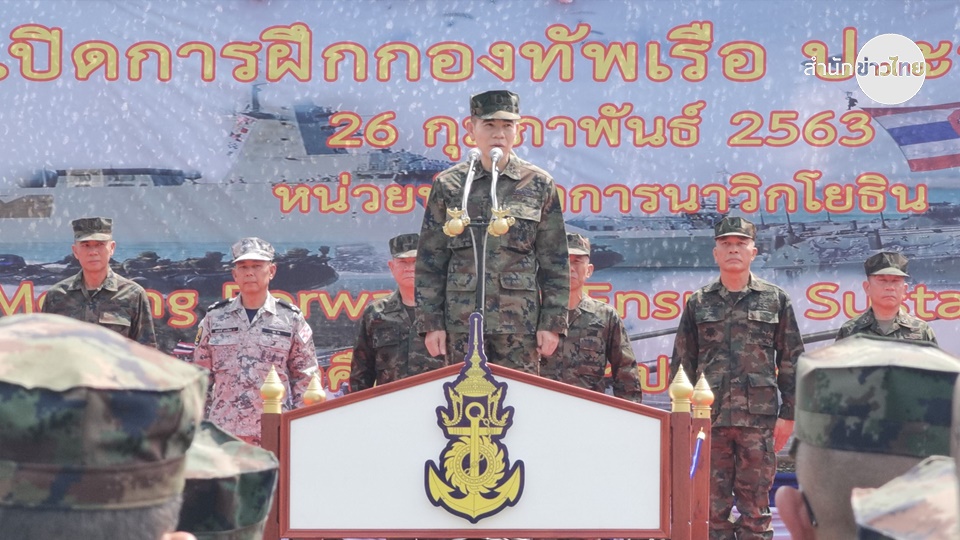 ชลบุรี 26 ก.พ.-กองทัพเรือ เปิดการฝึกกองทัพเรือ ประจำปี 2563 ผู้บัญชาการทหารเรือมอบนโยบายกำลังพล ย้ำให้ทุกหน่วยยึดการฝึกรบอย่างไร ฝึกอย่างนั้น