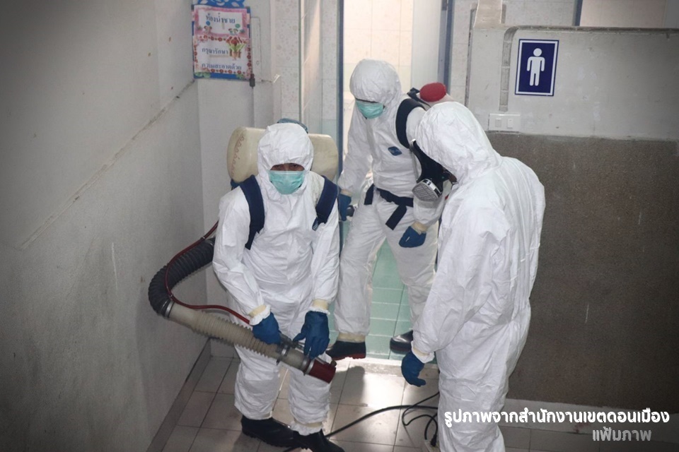 กทม.26 ก.พ.-เขตดอนเมืองเร่งฉีดพ่นน้ำยาฆ่าเชื้อ COVID-19 ในโรงเรียน ย่านดอนเมือง หลังพบเด็กนักเรียนชายติดเชื้อโควิด-19 จากผู้ปกครอง ขณะนี้รักษาตัวอยู่ที่สถาบันบำราศนราดูร