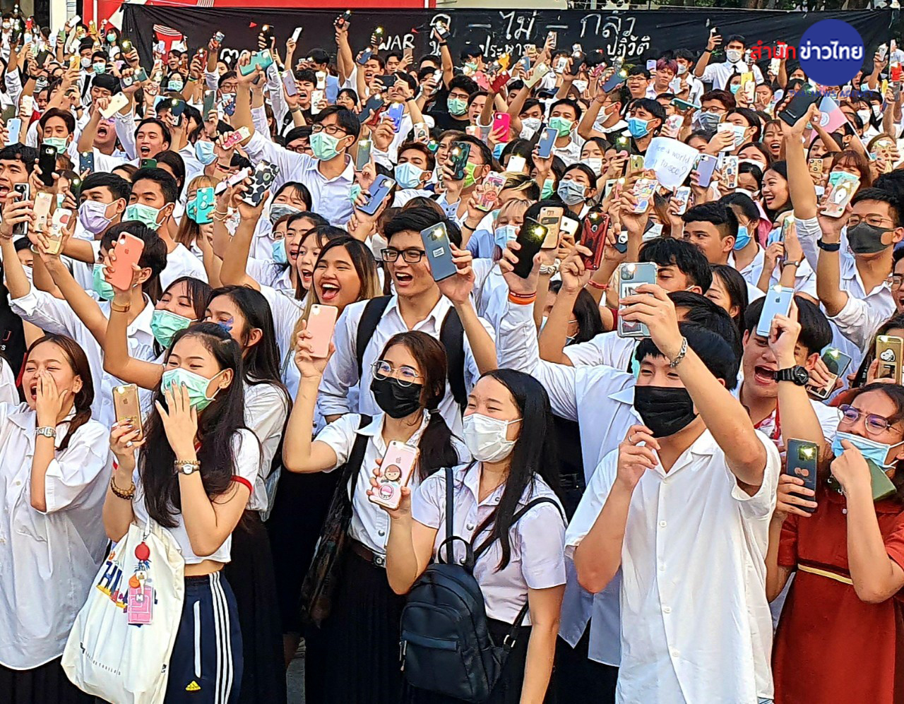 นิสิตทยอยเขียนความรู้สึกของตัวเองลงบนกระดาษ เป็นการแสดงเสรีภาพและความคิดเห็นทางการเมืองในปัจจุบันสลับกับบรรยากาศด้านบนเวทีมีการปราศรัยของนิสิตอย่างต่อเนื่องและพร้อมใจกันนำมือถือขึ้นมาทำแฟลชม็อบแสดงเป็นสัญลักษณ์การชุมนุมที่จะไม่ยืดเยื้อ .- สำนักข่าวไทย