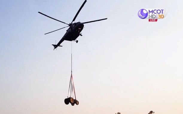 Mi-17 helicopters of the Army Aviation Center were transporting bulldozers, pickup trucks, fuel and other equipment to the national park in the northeastern province for officials to create firebreaks after fire destroyed about 3,400 rai on Feb 16-17 and resumed later. Officials took 11 days to extinguish the fire in the popular national park.