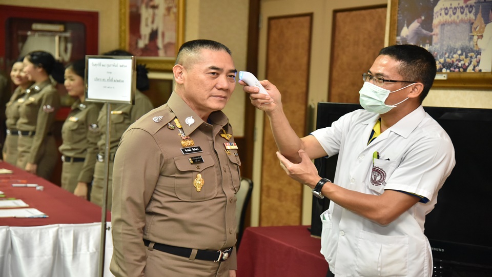 กรุงเทพฯ 28 ก.พ.- ผบ.ตร.รับผิดชอบต่อสังคม ตรวจวัดอุณหภูมิร่างกายป้องกันโควิด-19ก่อนเข้าประชุมบริหาร ตร.ปรากฎว่าไม่พบไข้