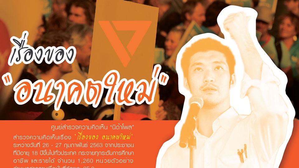 ศูนย์สำรวจความคิดเห็น “นิด้าโพล” สถาบันบัณฑิตพัฒนบริหารศาสตร์ (นิด้า) เปิดเผยผลสำรวจของประชาชน เรื่อง “เรื่องของอนาคตใหม่” ทำการสำรวจระหว่างวันที่ 26 – 27 กุมภาพันธ์ 2563 จากประชาชนที่มีอายุ 18 ปีขึ้นไป กระจายทุกภูมิภาค ระดับการศึกษา และอาชีพทั่วประเทศ รวมทั้งสิ้น จำนวน 1,260 หน่วยตัวอย่าง เกี่ยวกับคำตัดสินให้ยุบพรรคอนาคตใหม่และตัดสิทธิทางการเมืองกรรมการบริหารพรรคฯ 10 ปี และการจัดกิจกรรมแฟลชม็อบ ติดแฮชแท็กเพื่อต่อต้านรัฐบาล ของนิสิตนักศึกษา หลังจากผลการตัดสินวินิจฉัยยุบพรรคอนาคตใหม่