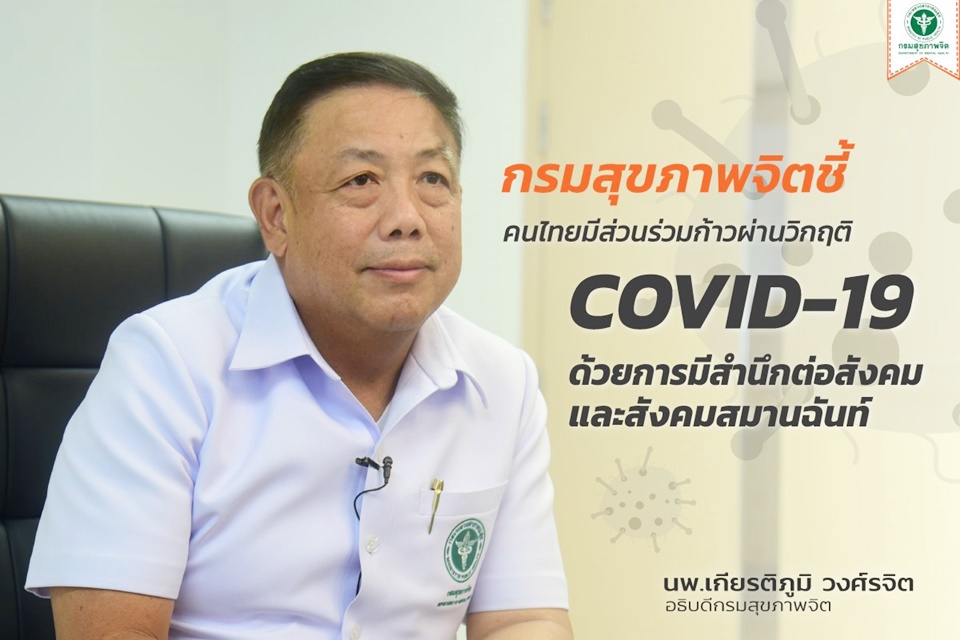 กรมสุขภาพจิต 2 มี.ค.-กรมสุขภาพจิตชี้คนไทยทุกคนมีส่วนร่วมก้าวผ่านวิกฤต “โควิด-19” ตระหนักถึง 2 คำ “สำนึกต่อสังคม-สังคมสมานฉันท์”