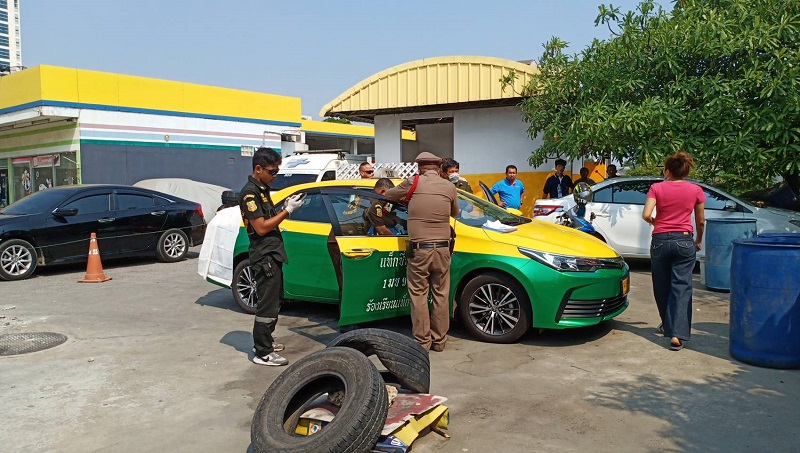 สมุทรสาคร 3 มี.ค.- ตำรวจพิสูจน์ศพชายคนขับวัย 49 ปี ภายในรถแท็กซี่ เขียวเหลือง หลังขับจอดพักรอเติมแก๊สในปั้มย่านสมุทรสาคร คาดหัวใจวายเฉียบพลัน