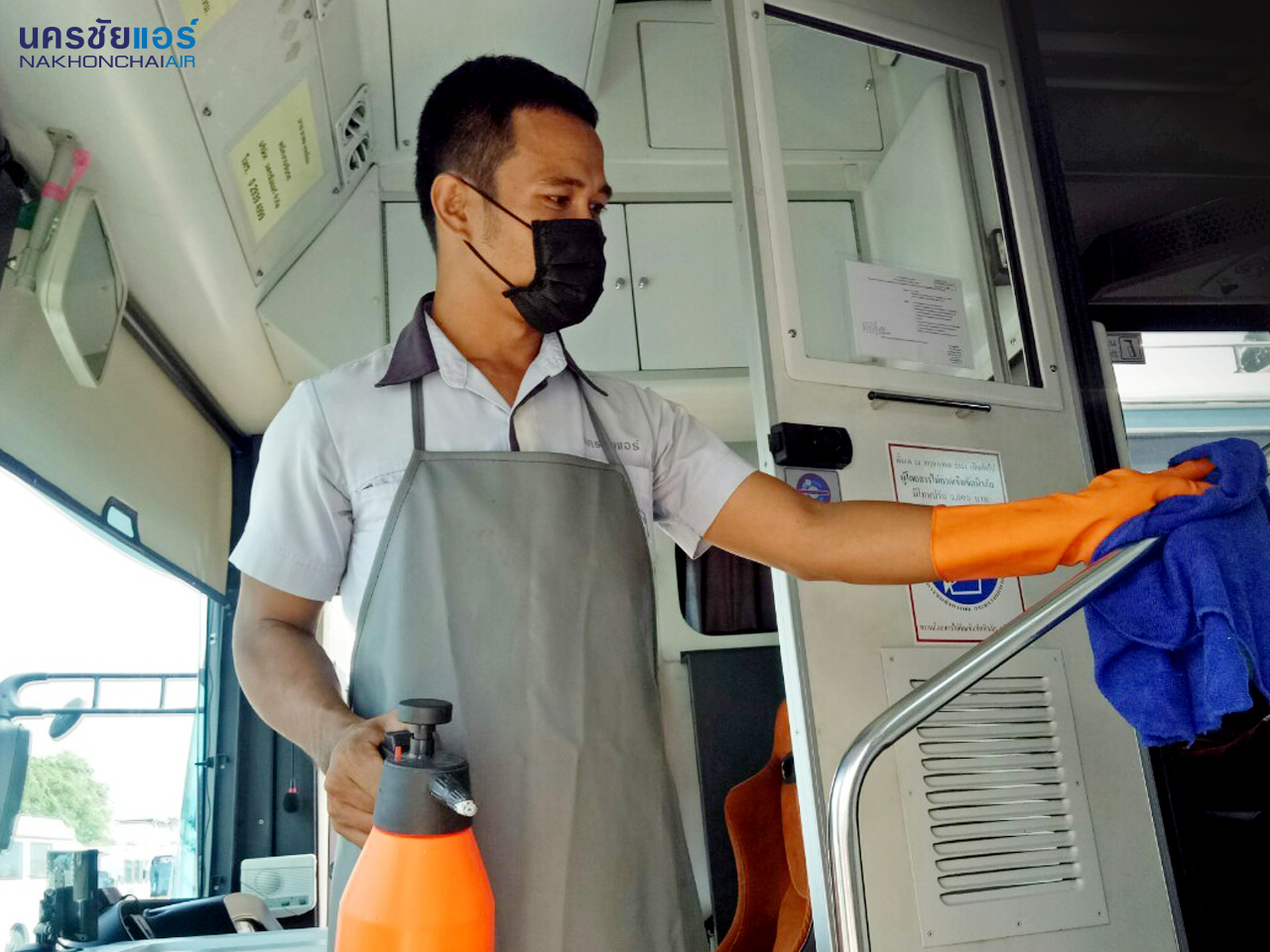 นางเครือวัลย์ กล่าวต่อไปว่า นครชัยแอร์ได้เพิ่มมาตรการคุมเข้มด้านการดูแลความสะอาดบนรถโดยสารทุกเที่ยว ทุกคัน พร้อมรองรับการเดินทางของประชาชนในช่วงเทศกาลสงกรานต์ 2563 นี้ โดยได้เตรียมพร้อมมาตรการดูแลความสะอาดป้องกันการแพร่ระบาดด้วยการทำความสะอาดภายในรถโดยสารทุกเที่ยวเพิ่มการใช้น้ำยาฆ่าเชื้อ (มาตรฐานเดียวกับการทำความสะอาดเครื่องมือแพทย์) เช็ดอุปกรณ์ภายในรถโดยสารโดยเฉพาะส่วนที่ผู้โดยสารต้องสัมผัส เช่น พนักวางแขน มือจับหลังเบาะ จอทีวี และช่องเก็บสัมภาระภายในรถโดยสาร มือจับประตูห้องน้ำ พร้อมฉีดพ่นน้ำยาฆ่าเชื้อภายในรถ นอกจากนี้ ได้จัดให้เจ้าหน้าที่เพิ่มความถี่ในการทำความสะอาดที่สถานีเดินรถนครชัยแอร์ โดยใช้น้ำยาฆ่าเชื้อเช็ดตามบริเวณที่ลูกค้าต้องสัมผัส เคาน์เตอร์จำหน่ายตั๋วโดยสาร ที่นั่งภายในห้องรับรองผู้โดยสาร รวมไปถึงห้องน้ำ และพื้นที่ที่มีผู้โดยสารมาใช้บริการเป็นจำนวนมาก และจัดให้มีน้ำยาฆ่าเชื้อไว้ให้บริการบริเวณชานชาลา และหน้าเคาน์เตอร์จำหน่ายตั๋วโดยสาร สำหรับพนักงานขับรถและพนักงานต้อนรับบนรถได้มีมาตรการเน้นย้ำเรื่องการดูแลสุขภาพ โดยบริษัทฯ มีทีม “เจ้าหน้าที่ความปลอดภัยด้านการขนส่งทางถนน” (Transport Safety manager) ที่คอยตรวจประเมินความพร้อมทั้งสุขภาพกายและใจก่อนออกปฏิบัติหน้าที่