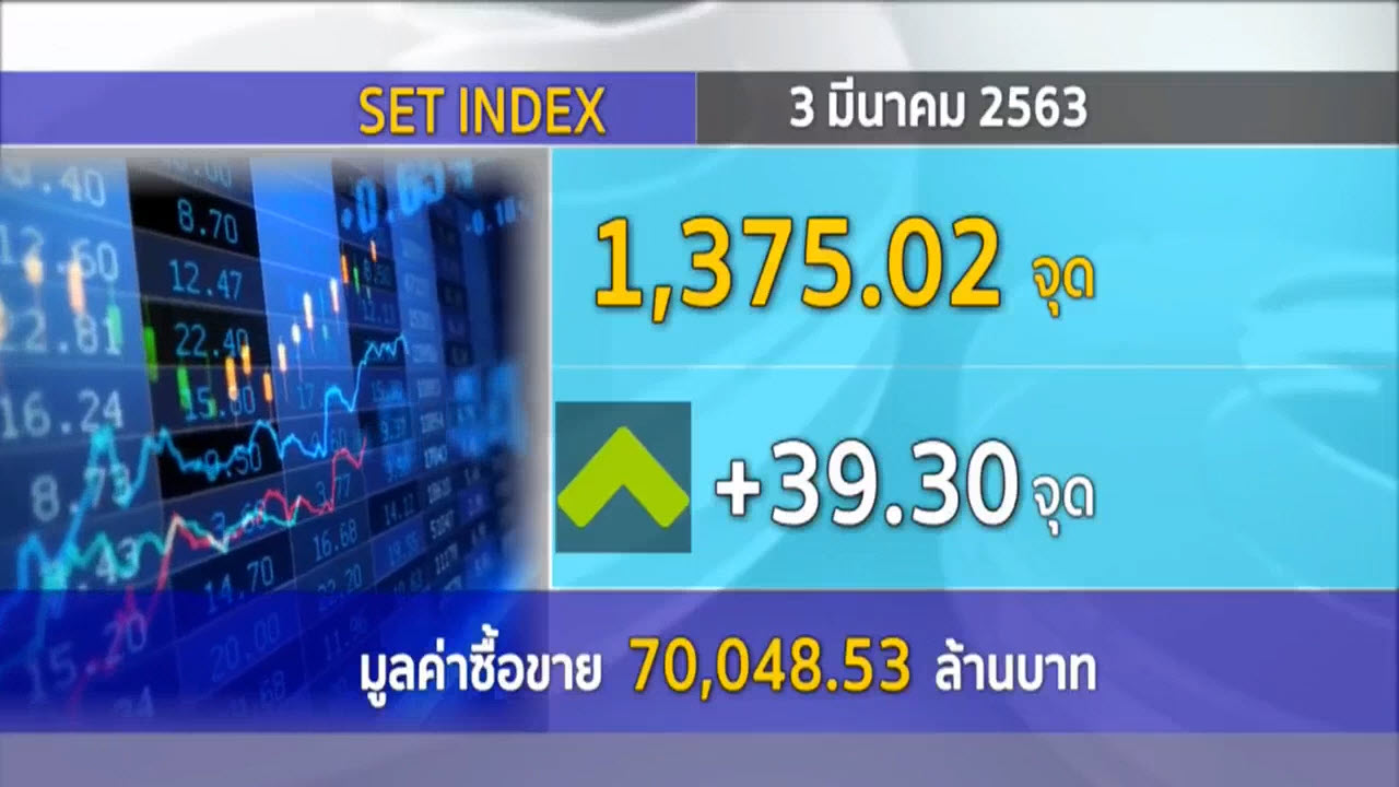กรุงเทพฯ 3 มี.ค. – ตลาดหลักทรัพย์ปิดวันนี้ที่ระดับ 1,375.02 จุด เพิ่มขึ้น 39.30 จุด (+2.94%) มูลค่าการซื้อขาย 70,048.53 ล้านบาท