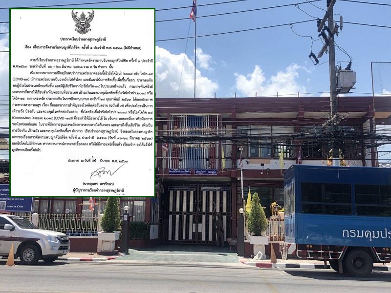 สุราษฎร์ธานี 4 มี.ค.- คุมเข้มโควิด-19 เรือนจำกลางสุราษฎร์ฯ ห่วงความปลอดภัยทั้งผู้ต้องขังและญาติ ประกาศเลื่อนวันเยี่ยมญาติ 16-20 มี.ค.นี้ ออกไปไม่มีกำหนด