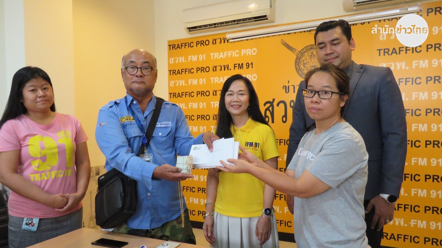 ที่สถานีวิทยุพิทักษ์สันติราษฎร์ สวพ.FM 91 นายนิพนธ์ พิทักษ์ภูบาล โชเฟอร์แท็กซี่อายุ 70 ปี ส่งมอบกระเป๋าถือพร้อมเงินสดกว่า 1.3 แสนบาท สร้อยคอทองคำ และเช็คเงินสด คืนนางสาวบุญโฮม แก้วโมง พนักงานบริษัทโฆษณาลืมไว้บนรถเมื่อช่วง 04.00 น. ที่ผ่านมามีผู้บริหารสถานีวิทยุฯร่วมเป็นสักขีพยาน