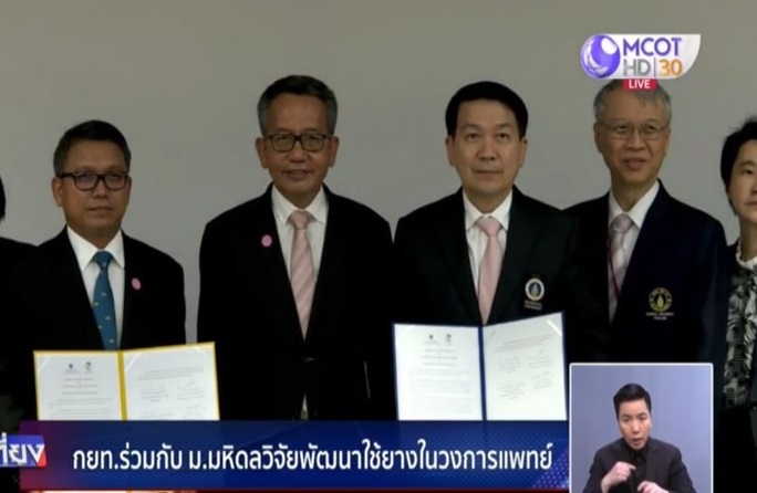 RAT chairman Praphan Boonyakiat signed the MOU with a representative of the Faculty of Medicine Ramathibodi Hospital. The memorandum was aimed at promoting bilateral cooperation on researches, knowledge and the innovation of medical equipment made from natural rubber. Results from the cooperation would be developed for commercial use, policies and public interest.