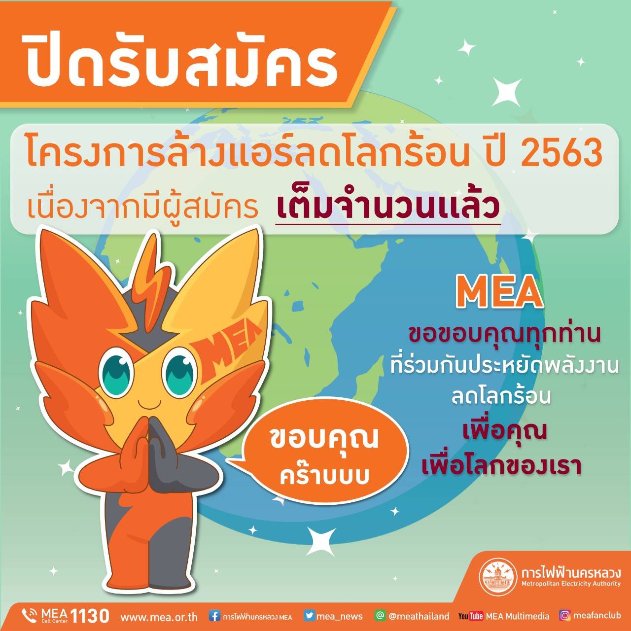🌍MEA ขอบคุณทุกท่านที่ให้ความสนใจสมัครเข้าร่วมโครงการล้างแอร์ลดโลกร้อนปี 2563