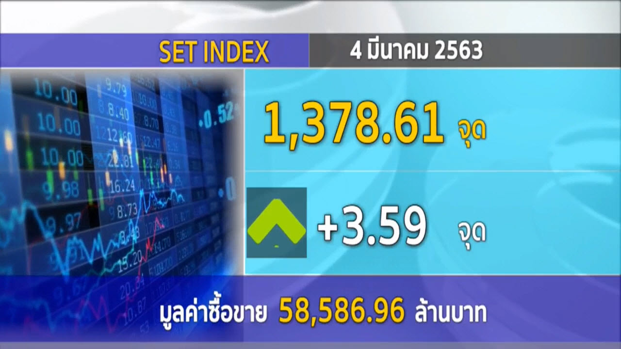 กรุงเทพฯ 4 มี.ค. –  ตลาดหลักทรัพย์ปิดวันนี้ที่ระดับ 1,378.61 จุด เพิ่มขึ้น 3.59 จุด (+0.26%) มูลค่าการซื้อขาย 58,586.96 ล้านบาท