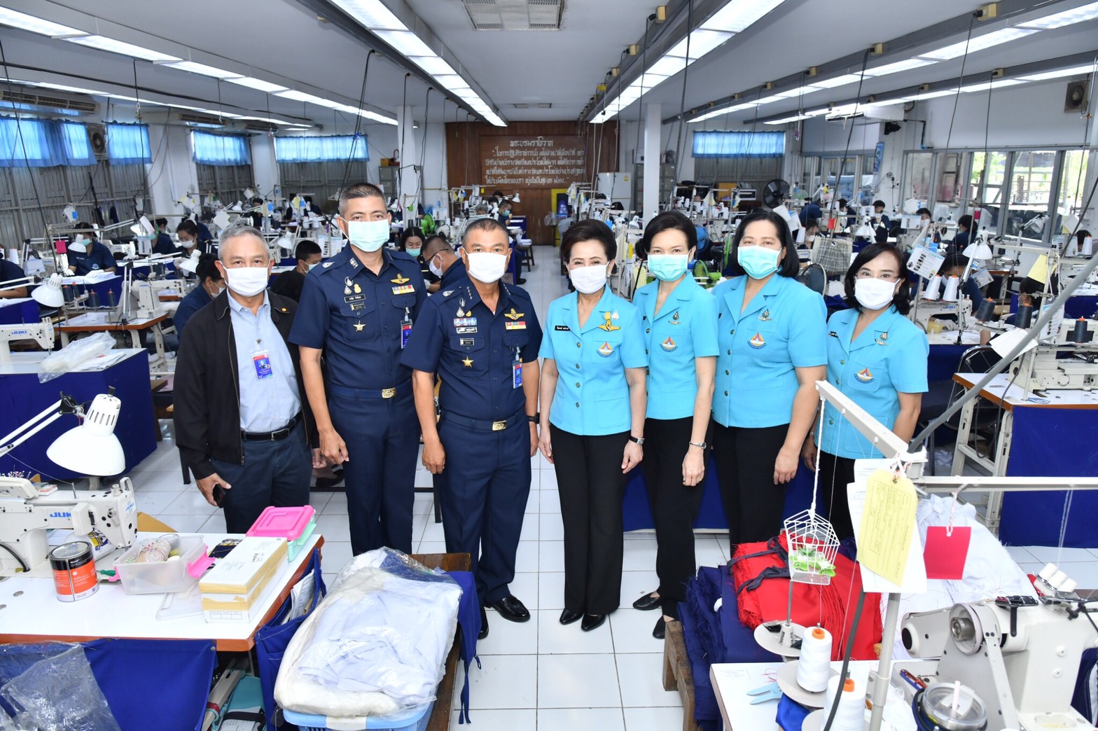 พลอากาศเอก มานัต วงษ์วาทย์ ผู้บัญชาการทหารอากาศ พร้อมด้วย แพทย์หญิงวิไลภรณ์ วงษ์วาทย์ นายกสมาคมแม่บ้านทหารอากาศ เดินทางไปยังกรมพลาธิการทหารอากาศ เพื่อเยี่ยมชมและสร้างขวัญกำลังใจให้แก่เจ้าหน้าที่ของกรมพลาธิการทหารอากาศ ที่เร่งตัดเย็บหน้ากากอนามัย จำนวน 50,000ชิ้น ตามสั่งการของผู้บัญชาการทหารอากาศ เพื่อให้ศูนย์บรรเทาสาธารณภัยกองทัพอากาศ นำไปแจกจ่ายให้แก่กำลังพลของกองทัพอากาศใช้ในการป้องกันการติดเชื้อ COVID-19